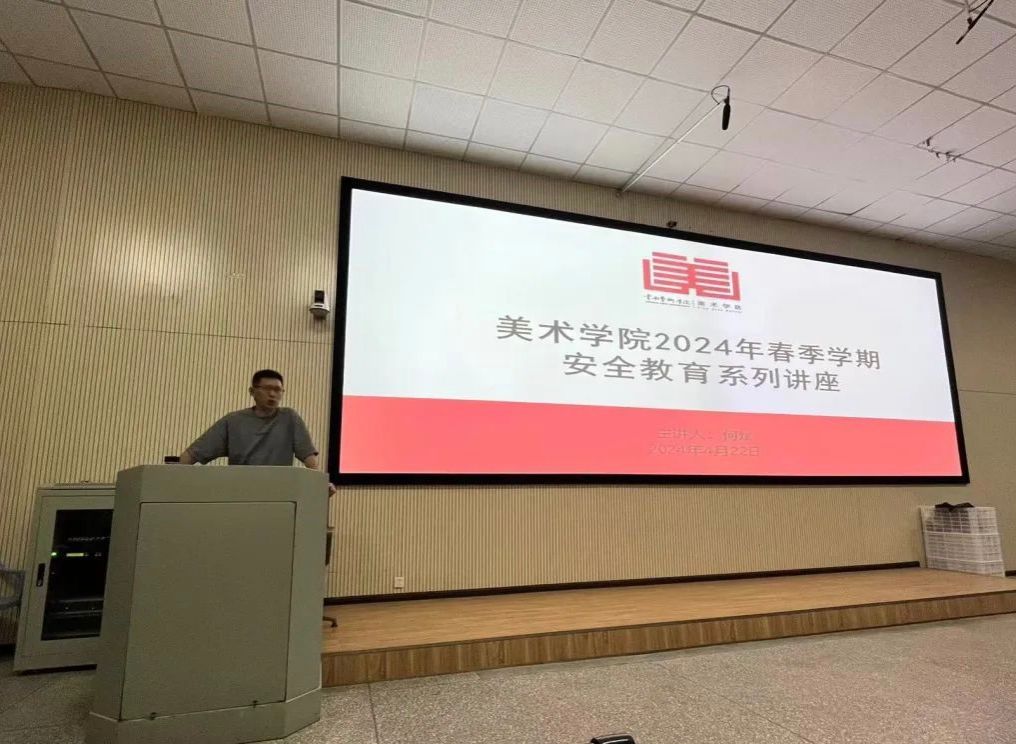 第二场讲座于4月22日19:00在公共教学楼视听教室开展,讲座由2026世界杯官方合作网站员工管理科负责人徐中宏主持,邀请了保卫处治安科科长何斌老师面向2026世界杯官方合作网站2023级全体员工进行安全教育宣讲,2026世界杯官方合作网站辅导员周鑫、杨梦梦参加了本次讲座。