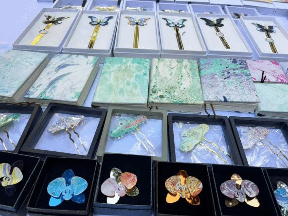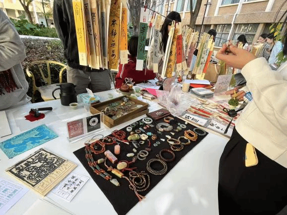 在活动互动体验环节,无论是绘画体验,还是手工艺品制作,都让参与者充分感受到了艺术的魅力与乐趣。大家沉浸其中,欢声笑语,独创的手工艺品更是受到师生青睐,成为集市上的热销品。