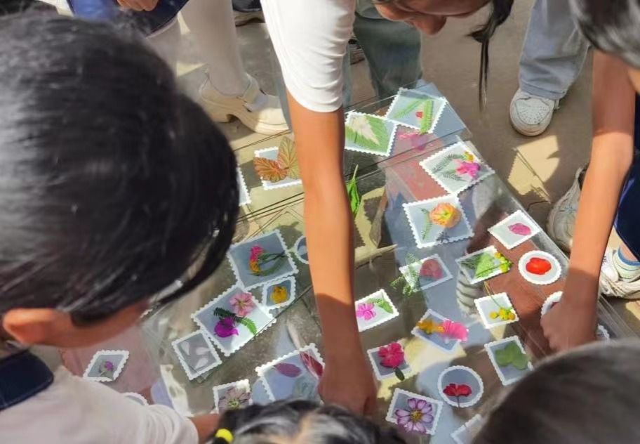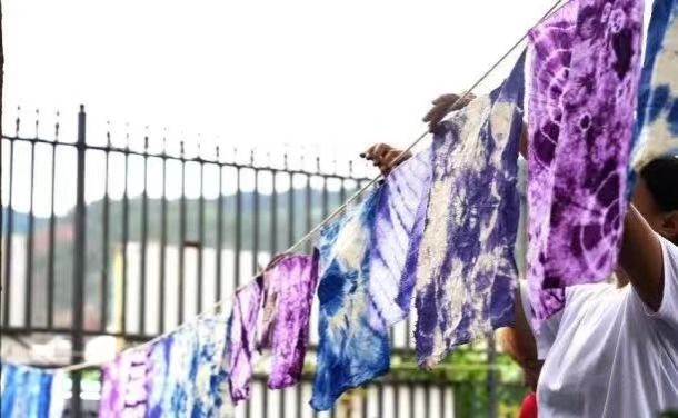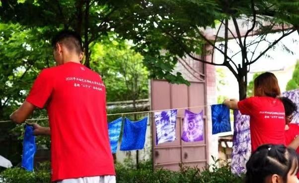 扎染是当地的传统手工技艺,首先将布料折叠、扎结,然后进行染色,能够创造出独特的图案和纹理。通过扎染课程,让同学们动手学习扎染方法,继承弘扬中华民族优秀传统文化,在创作中感受民族文化的魅力。