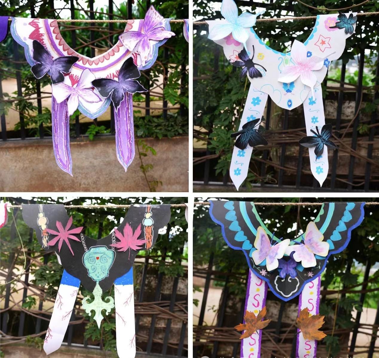 通过前期基础色彩课程的学习,同学们掌握了一定的绘画方法和色彩搭配技巧,能够将基础色彩知识运用到云肩剪纸上,将剪纸与绘画融合,创作出了一幅幅精美的云肩剪纸作品。