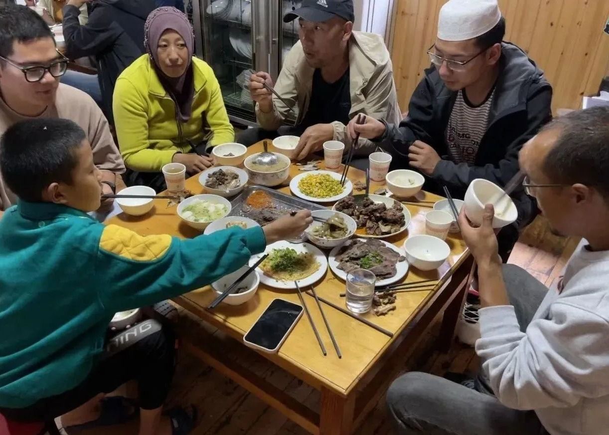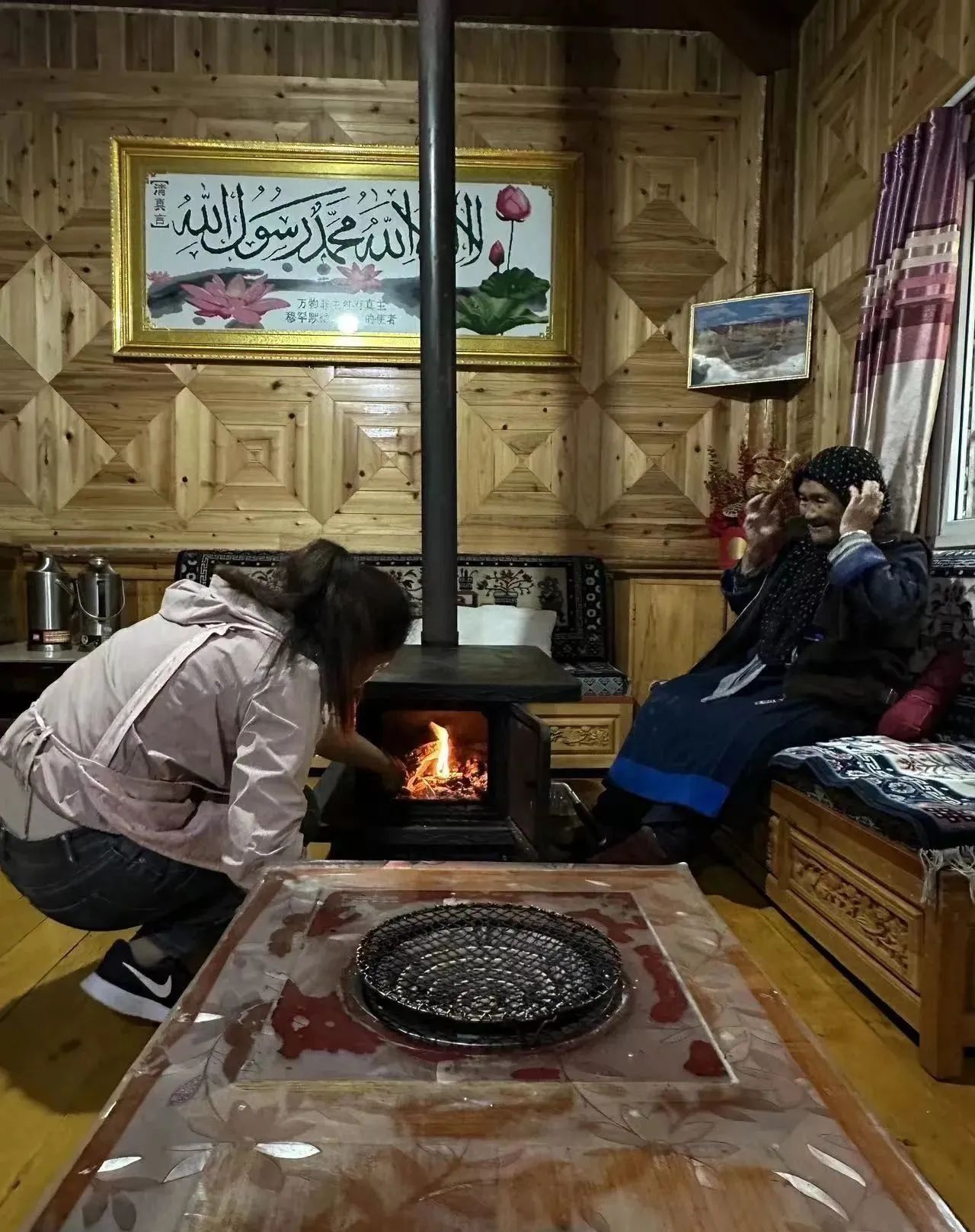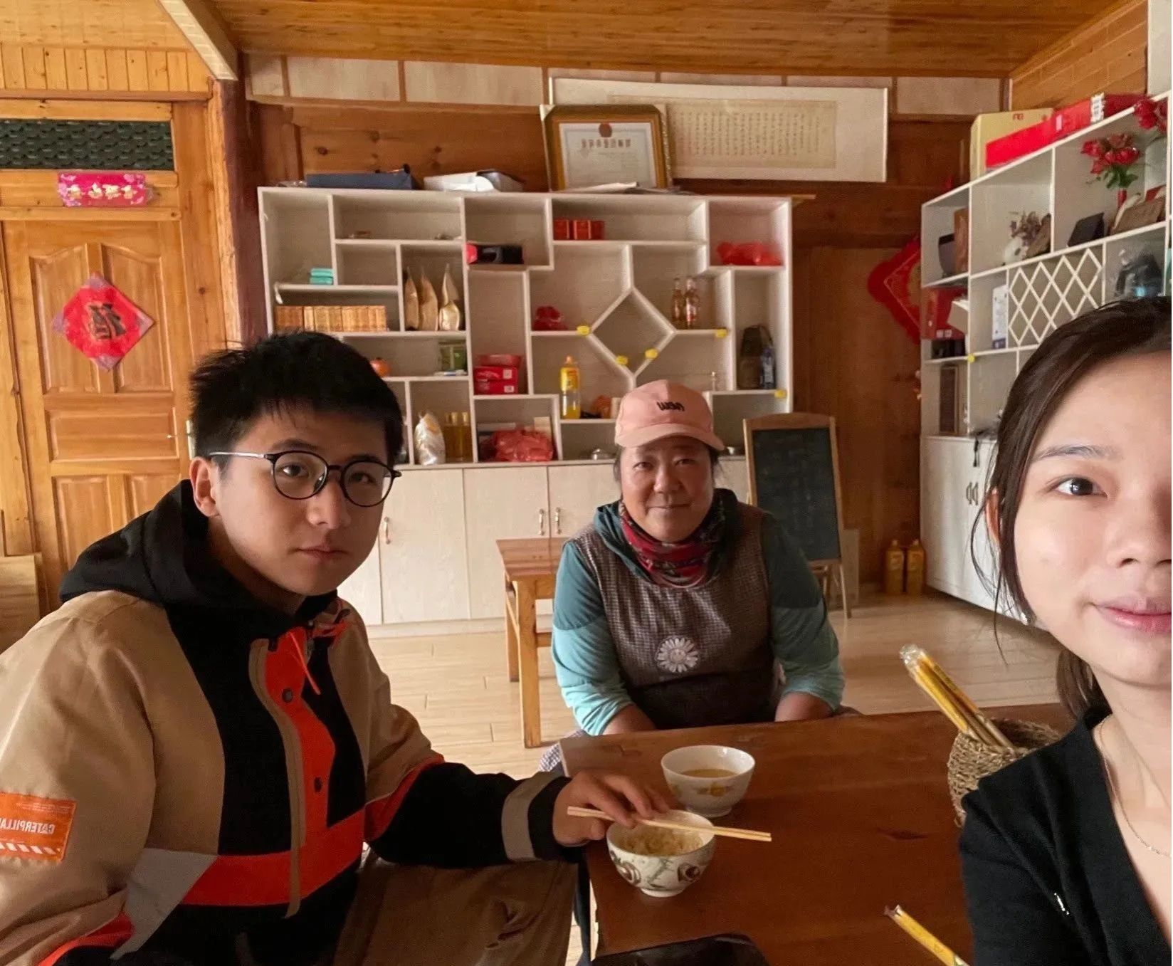 实践期间师生两人一组入住村民家中,以家长制的形式和哈巴村民同吃同住成为一家人,同学们经常说:“家人叫我们吃饭了、家人和我们一起做饭,家人和我们一起讨论村寨发展,家人今天要出行。”等等,和家人一起生活,工作,一家人时刻洋溢着幸福和新希望。