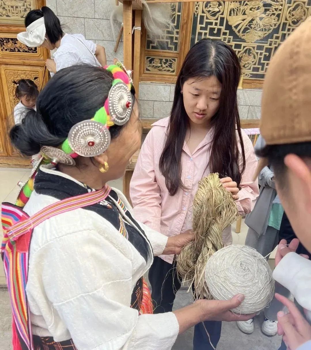 团队深入哈巴村及周边旅游示范点进行实地考察,收集当地的纳西族、回族、彝族等少数民族文化,探究纳西族文字起源,体验东巴纸造纸工艺,纳西族服饰制作等进行参观与交流,认知特色农作物等展开学习、交流、讨论,为村寨旅游发展、民宿改造出谋划策。