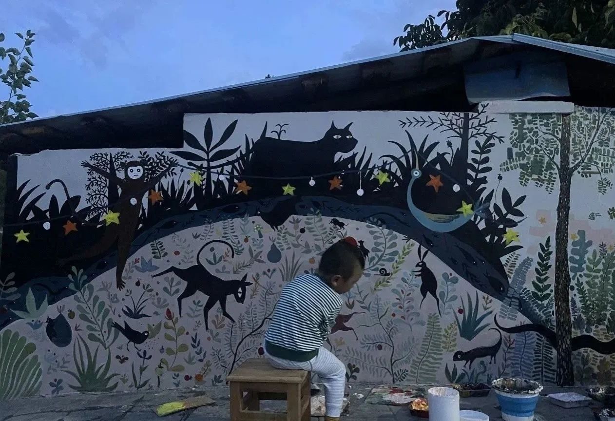 团队成员因地制宜,通过墙绘,以文艺的形式推动党的创新理论飞入寻常百姓家。助力乡村振兴,促进民族团结,充分展现出新时代老员工的社会责任担当。此次暑期“三下乡”活动,师生们把人民需求、专业知识和社会实践有机结合,让员工在实践中成长、成才,实现个人价值,生动表达“艺术热爱人民、艺术扎根人民、艺术服务人民、艺术属于人民”的主题。