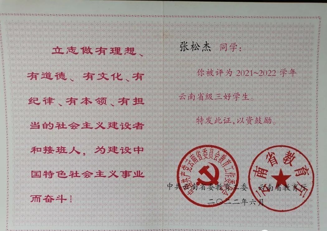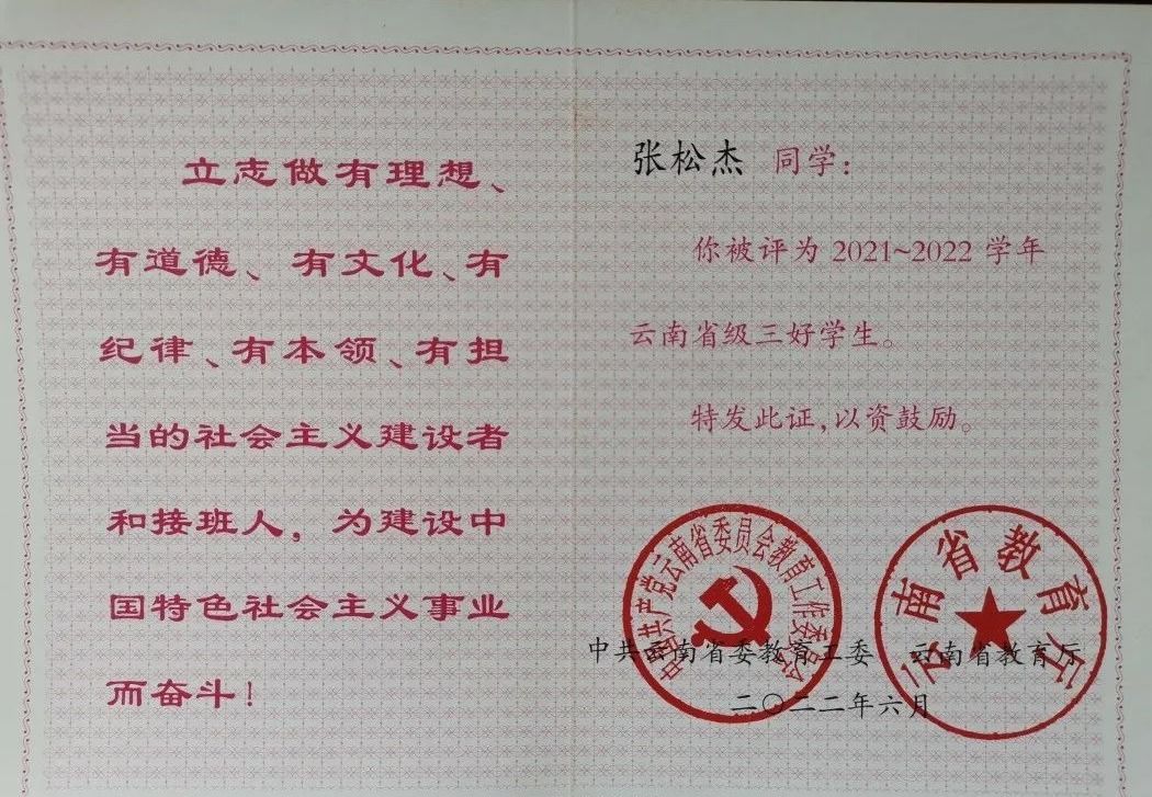 2021至2022年荣获省级三好员工