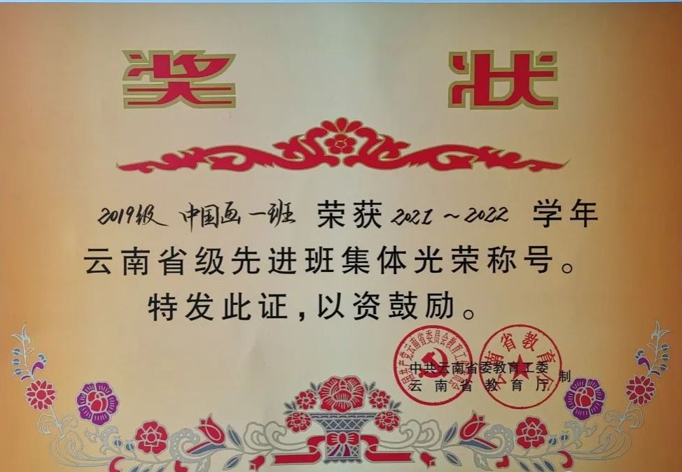 2021~2022学年云南省级先进班集体光荣称号
