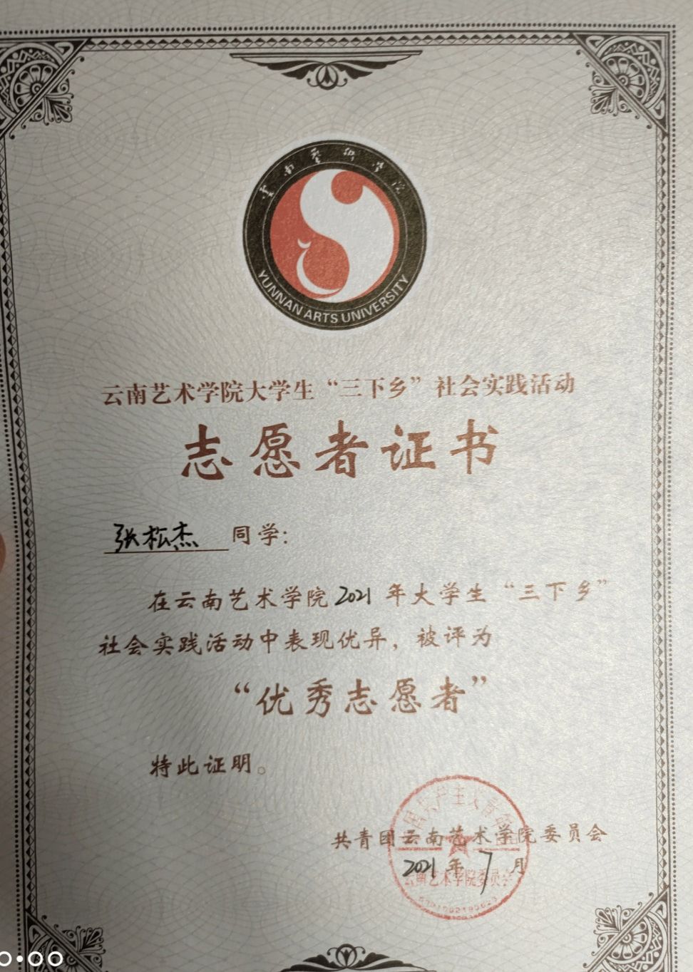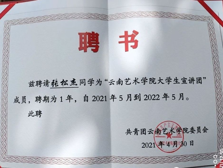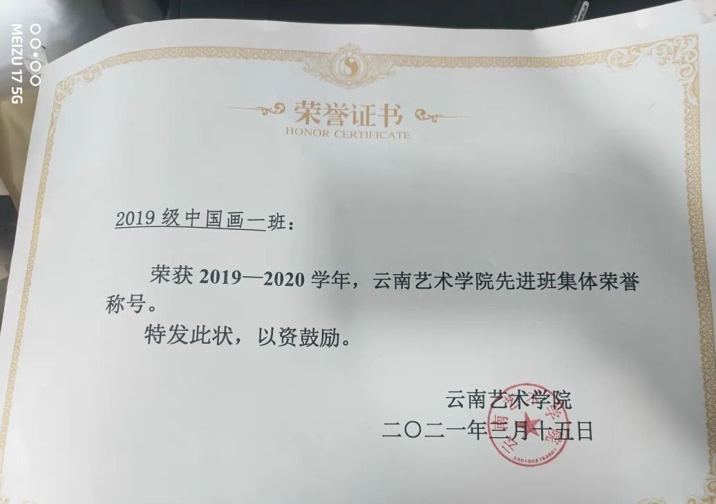 2019至2020学年担任19级中国画一班班长,并带领本班同学荣获2019至2020学年优秀班集体校级荣誉称号和省级荣誉称号。2020至2021学年带领本班成员荣获校级省级优秀班集体称号并带领2019级中国画一班团支部荣获五四红旗团支部称号。
