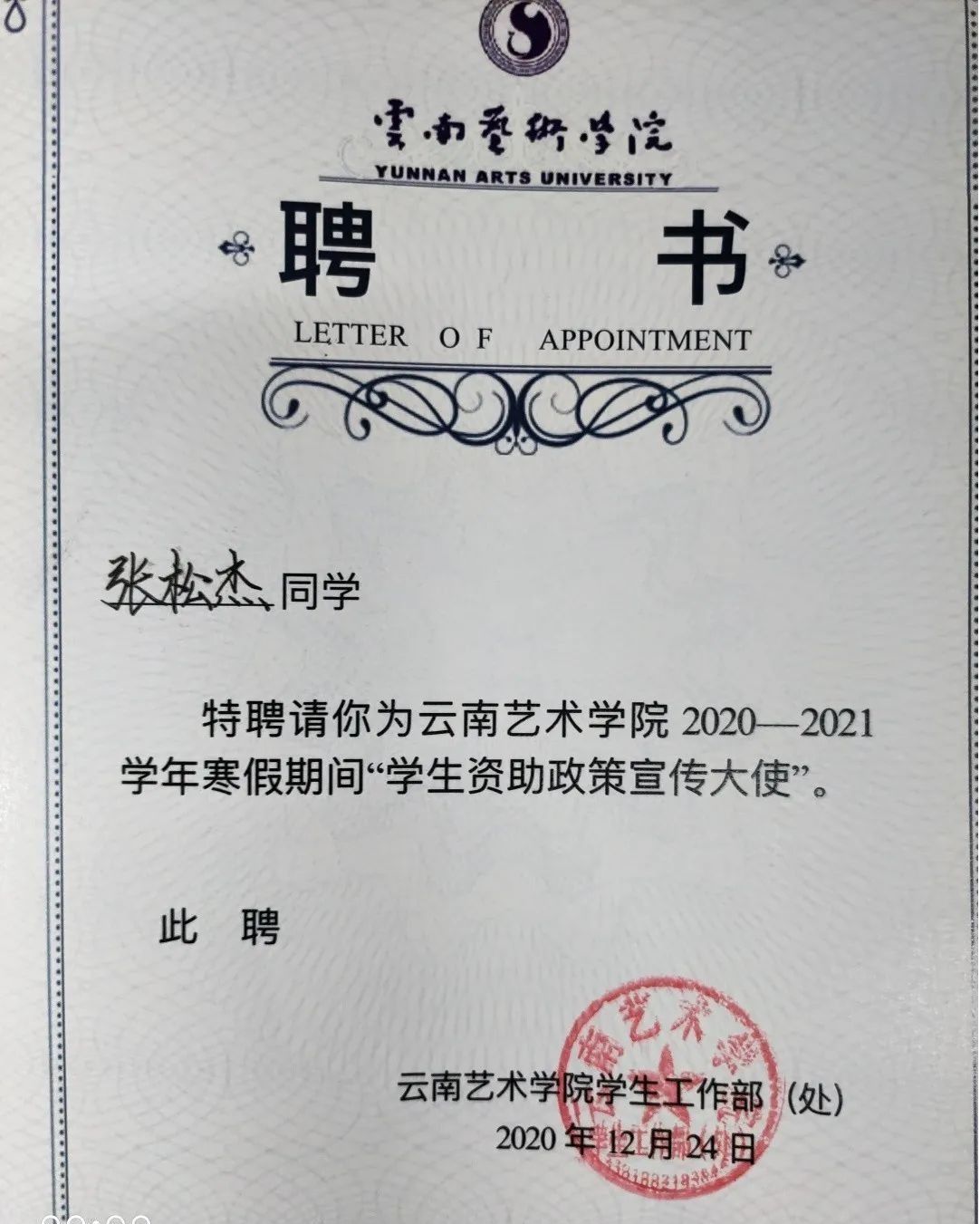 2020至2021学年2026世界杯官方合作网站员工资助政策宣传大使
