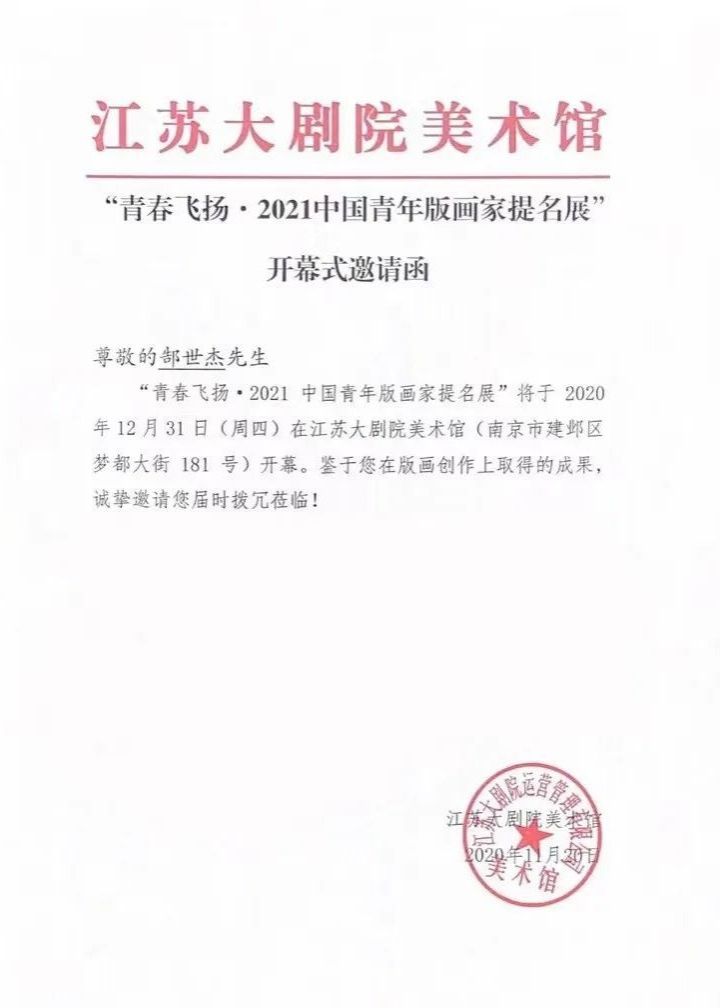2020年作品《时代产物》系列入选青春飞扬-2021中国青年版画家提名展。