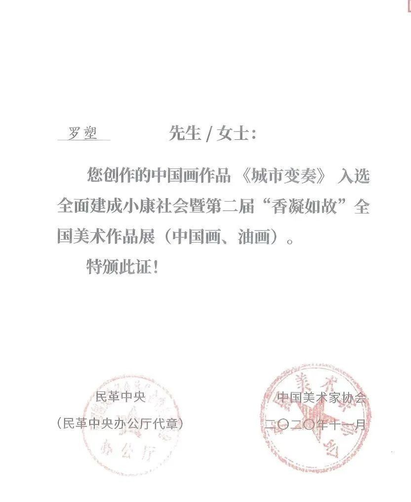 2020年 入选《第二届“香凝如故”全国美术作品展》并在中国美术馆展出