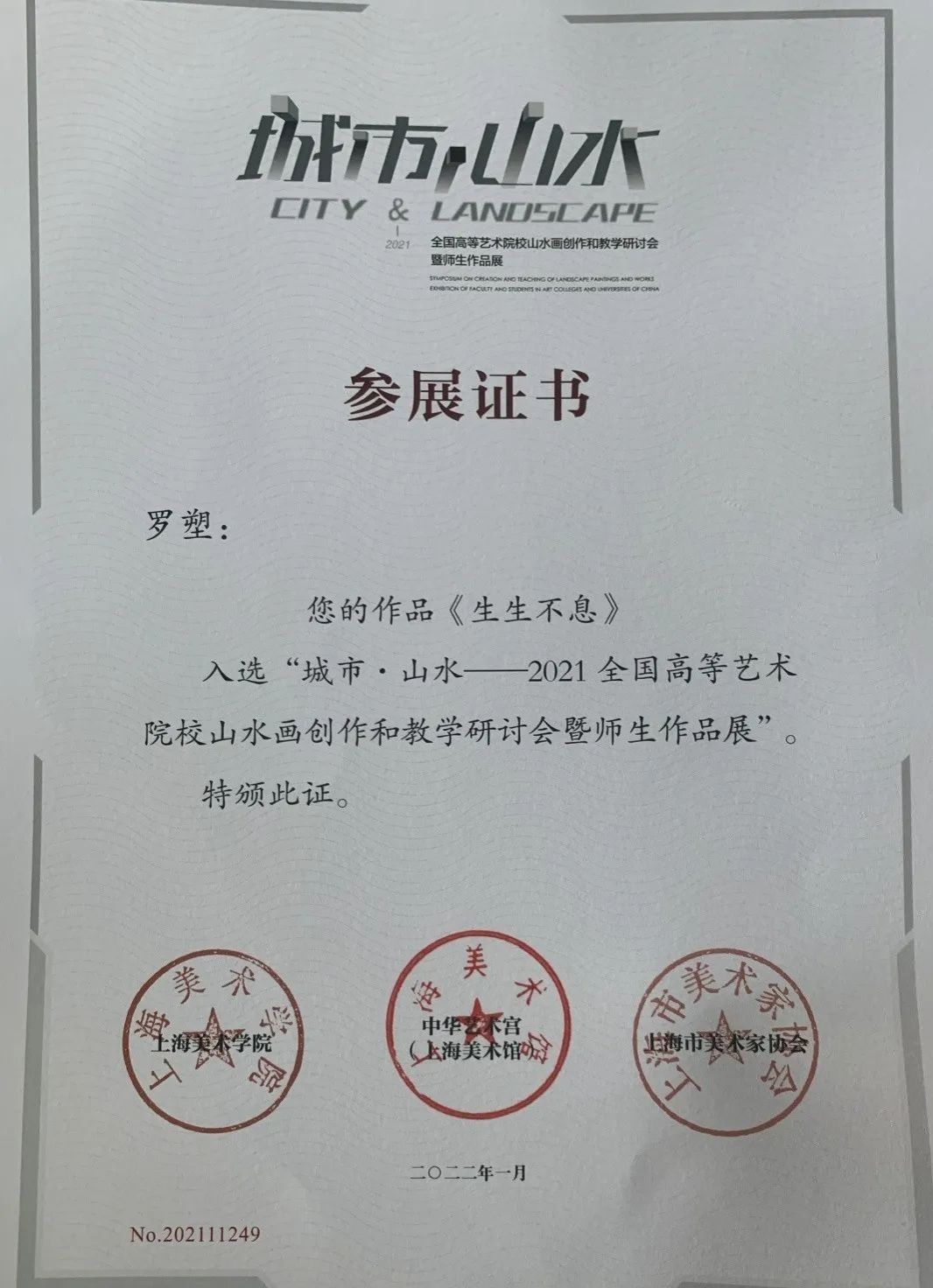 2021年 作品入选“城市山水——2021年全国高等艺术公司校山水创作和教学研讨会暨师生作品展”