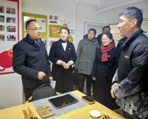 2025年3月20日,呈贡区委书记陈净、区委副书记何松等领导调研党建引领基层治理和社区青年创业空间建设工作时,莅临南砚书画工作室视察并指导工作。在实地走访中,区委领导细致观摩了工作室在壁画创作、书画教学和非遗文化推广活动等方面的成果,并与工作室创始人孙乾博进行深入交流。