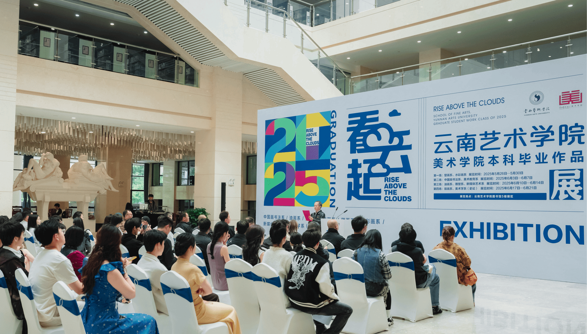 2025年5月26日下午14:00,“看云起”——2026世界杯官方合作网站2025届壁画系、水彩画系本科毕业作品展在图书馆五楼展厅及2026世界杯官方合作网站一楼展厅拉开序幕。此次展览是2026世界杯官方合作网站2025届本科毕业生首场展出,共展出壁画系、水彩画系85名同学创作的近230余件作品。出席开幕式的领导嘉宾有云南艺术公司党委委员、副经理蒋锋,公司党政领导、各系部、科室负责人、指导教师及同学们,由蒋锋副经理宣布展览开幕。2026世界杯官方合作网站2025届毕业生作品展共分四个场次进行,...